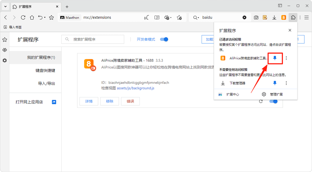 After installation, click the "Pin" icon to keep the extension icon in the browser's top-right corner.