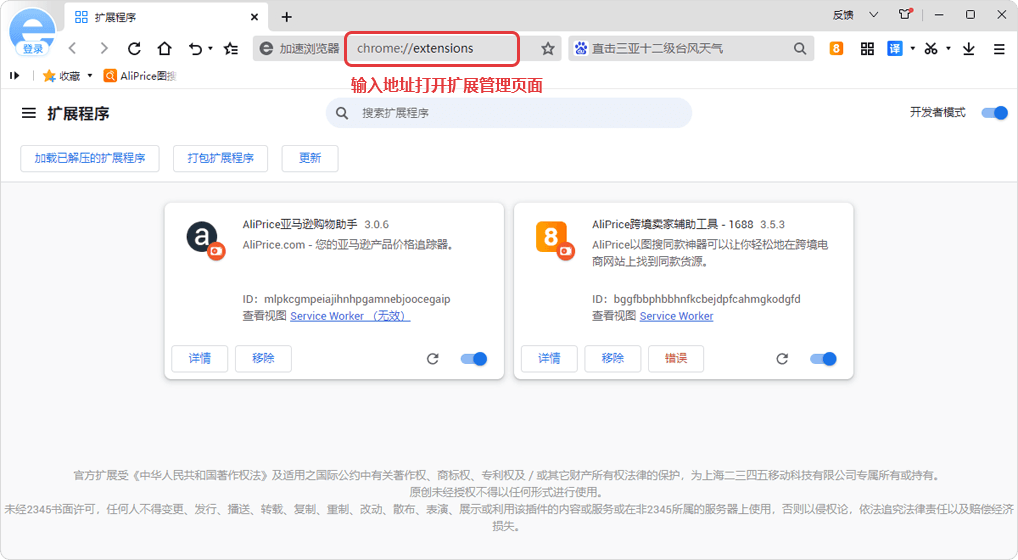 2345 Browser: Manage Extensions