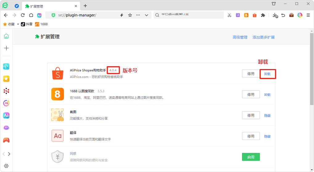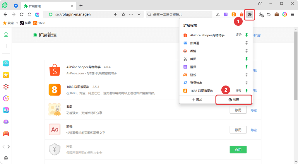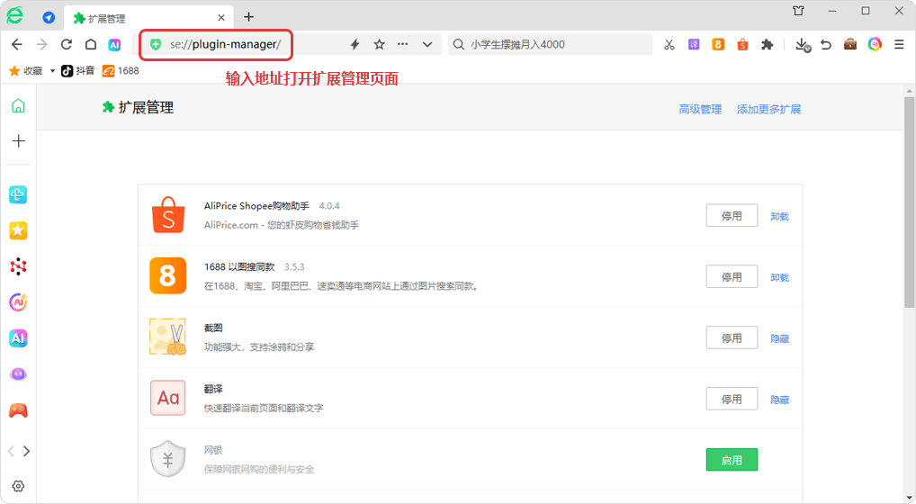 Method 2: Enter se://plugin-manager/ Copy Link in the address bar to open the extensions management page.
