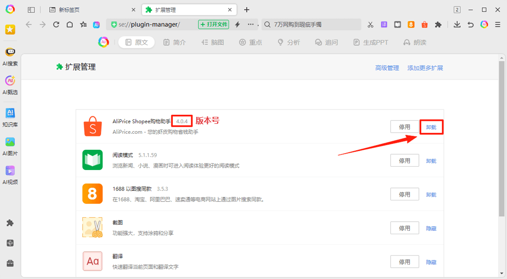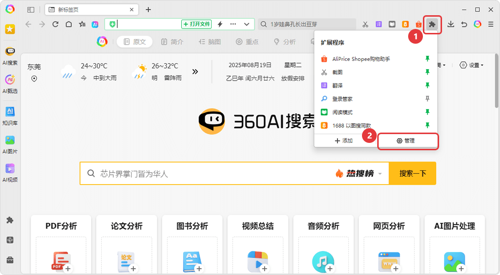 360 AI Browser: Manage Extensions