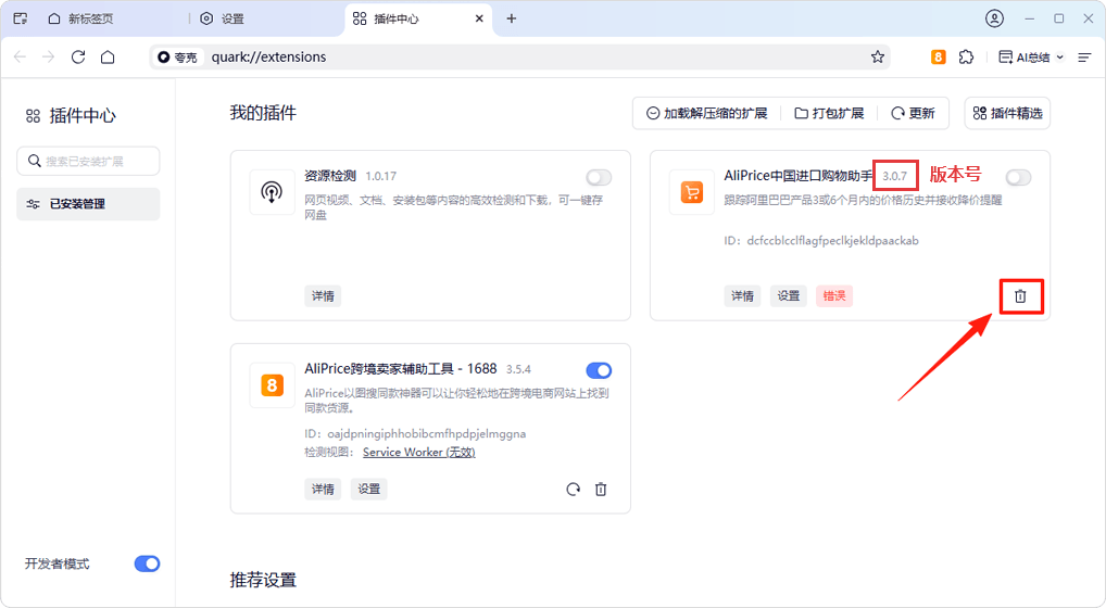 Quark Browser: Manage Extensions